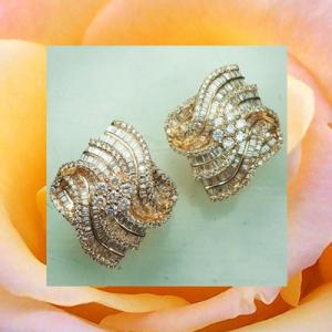 ต่างหูดอกไม้เพชรกลม และบาร์เก็ต 2.22 ct.