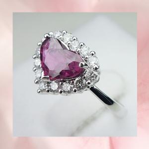 R00046: แหวนทับทิมไทยแท้ ทรงหัวใจล้อมเพชร...